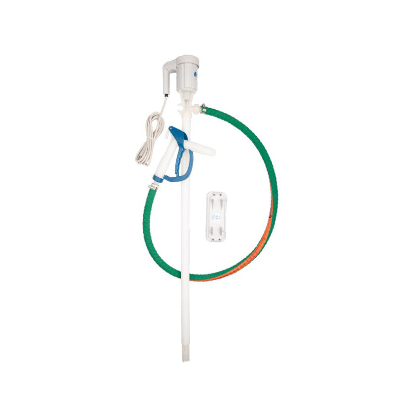 Drum pump package includes wall hanger, 5ft. PVC hose, hose clamp