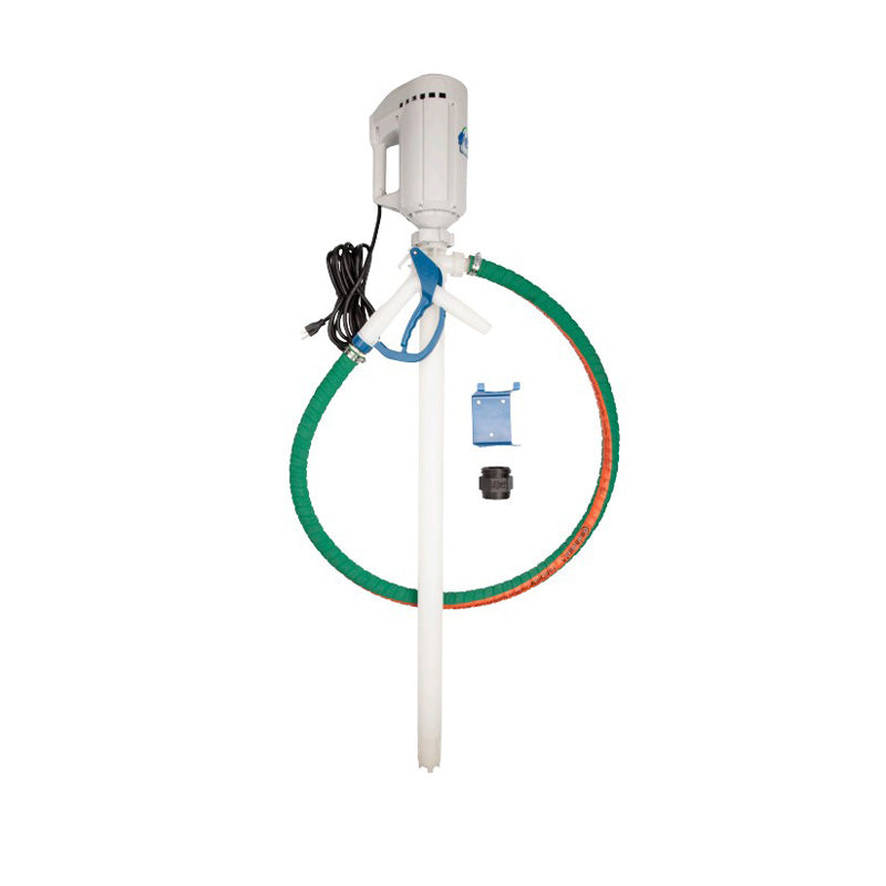 Drum pump package includes wall hanger, 5ft. PVC hose, hose clamp